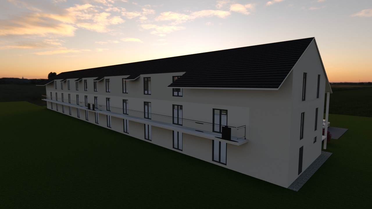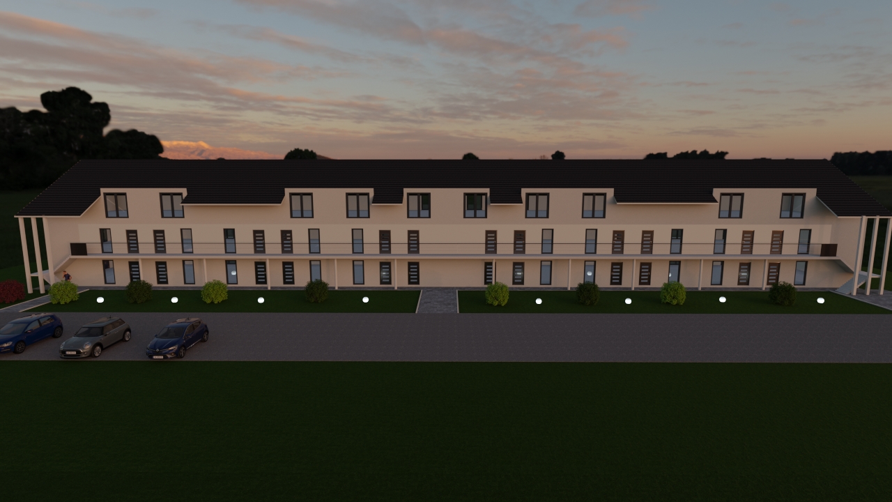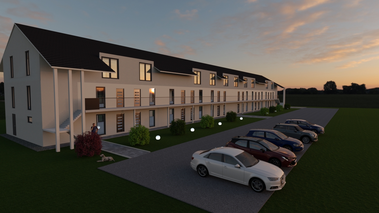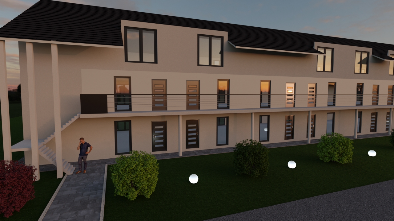 Kondygnacje parteru oraz I piętra : - osobne wejścia do apartamentów z zewnątrz, - apartamenty składające się z sypialni, salonu, holu, aneksu kuchennego, łazienki oraz przestronnego funkcjonalnego balkonu . Kondygnacja II piętra – poddasze: - wejścia do apartamentów z wewnętrznej klatki schodowej, - apartamenty składające się z sypialni, salonu, holu, aneksu kuchennego, łazienki oraz okna balkonowego, zabezpieczonego, bez możliwości wyjścia